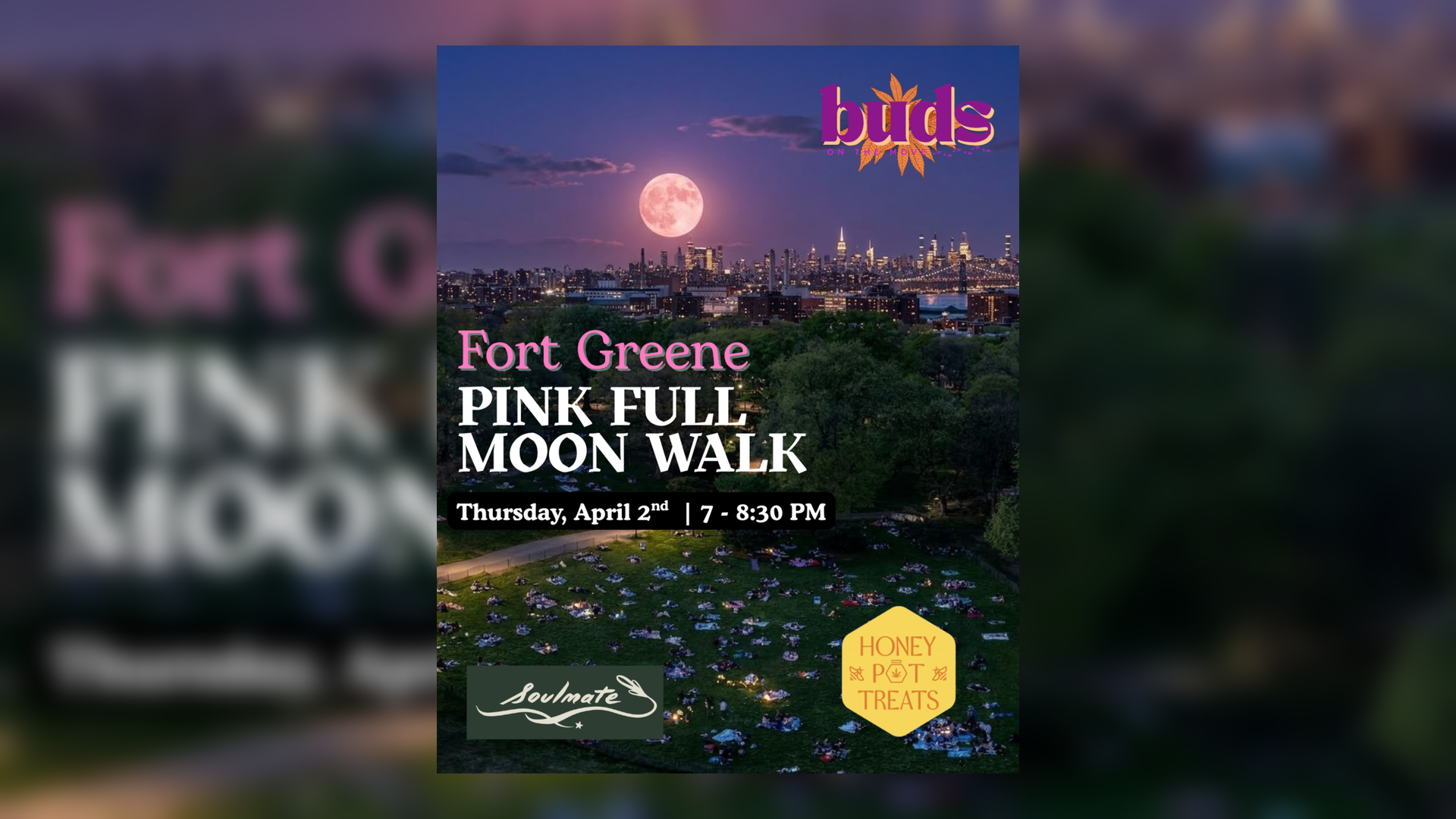 Celebrate Soulmate’s one-year anniversary with a relaxed Pink Full Moon stroll through Fort Greene, plus treats, connection, and springtime energy.